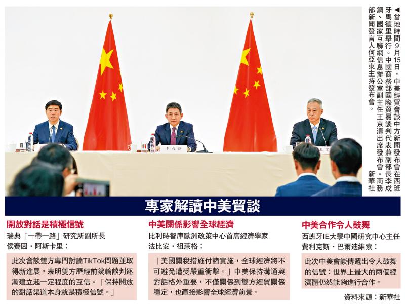 照片:9月15日,当地时间,在西班牙马德里举行了中国 - 美国经济和贸易谈判的新闻发布会。国际贸易谈判代表兼中国商务部副部长李·昌冈(Li Chenggang)和州互联网信息办公室副主任王·金托(Wang Jingtao)参加了新闻发布会。商务部发言人新闻发布会。新华社