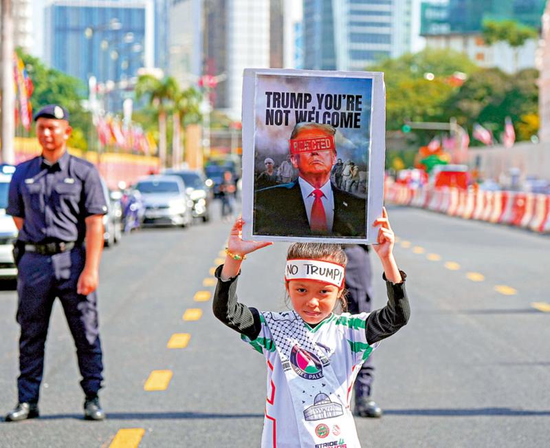图片:马来西亚民众26日参加反特朗普示威活动。美联社【大公报】综合BBC和半岛电视台报道:美国总统特朗普26日抵达马来西亚,开始第二任期首次亚洲之行,其中还包括日本和韩国。他26日首次出席东盟峰会,见证柬埔寨和泰国签署两国和平联合声明,并与马来西亚、柬埔寨、泰国等国签署贸易协定。不过,有分析指出,“和平协议”和“贸易协议”都有作秀之嫌,能否落实还有待观察。特朗普访问马来西亚之际,当地爆发反美示威活动,抗议美国在巴以冲突中偏袒以色列。特朗普26日与马来西亚、泰国和柬埔寨代表签署联合和平宣言。他声称编辑:“我们做了许多人认为不可能的事情,拯救了数百万人的生命。”声明称,泰国和柬埔寨同意从边境撤回重型武器,并清除所有爆炸物和地雷。泰国还将释放18名柬埔寨囚犯。不过半岛电视台指出,自7月泰国和柬埔寨停火以来,两国边境零星暴力事件持续发生,引发冲突的划界问题仍未得到解决。外界对能否实现持久和平存有疑虑。特朗普政府26日宣布,已与马来西亚和柬埔寨签署贸易协定,并与泰国和越南达成框架协议。不过,美国仍将对这些国家维持19%或20%的关税,并且仅同意对某些商品提供关税豁免。作为回报,各国承诺提供优惠市场泰国还承诺每年购买80架美国飞机以及能源产品。 上一篇:俄罗斯成功试射“海燕”核动力巡航导弹